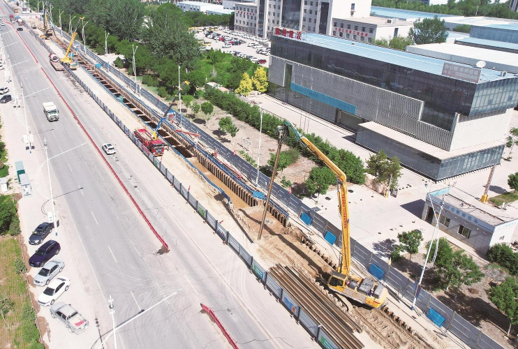 銀川市第一再生水廠再生水利用管網(一期)工程正在如火如荼推進(5月16日攝)。