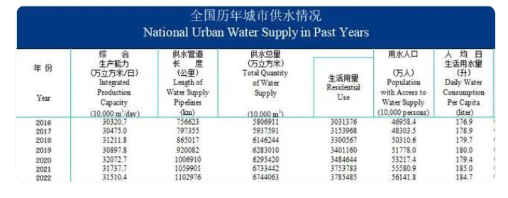 2016年國內供水管網長度為75.66萬公里,2022年國內管網長度為110萬公里。7年共增長34.64萬公里,增幅高達45.78%,年均增長管道長度約5萬公里,年均增幅6.54%。截至2022年城市供水管道長度排名,第一名為廣東省15萬公里,第二名為江蘇省13萬公里,第三名為浙江省10.5萬公里。