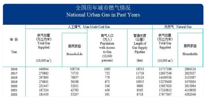 2016年,國內燃氣管網長度為55.10萬公里;2022年國內供氣管網長度98.04萬公里。7年共增長42.94萬公里,增幅高達85.71% ,年均增長管道長度約6.13萬公里,年均增幅12.24%。截至2022年城市燃氣管道長度排名,第一名為江蘇省11.5萬公里,第二名為山東省8.3萬公里,第三名為四川省7.7萬公里。