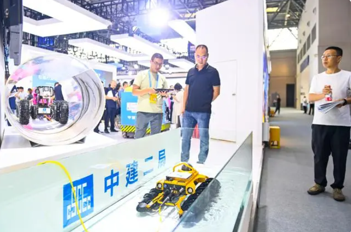 ▲9月4日,2023中國國際智能產(chǎn)業(yè)博覽會現(xiàn)場,中建二局工作人員正在展示管道非開挖智能檢測修復(fù)技術(shù)。記者 齊嵐森 攝