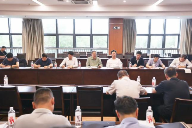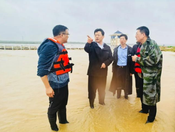 李邑飛、張雨浦在8·25防洪搶險救援指揮部,聽取應急救援情況匯報,共同研判險情風險、商討處置方案及措施。