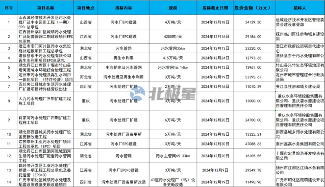 2024年已進(jìn)入倒計(jì)時,在最后這一個月里,有多個污水項(xiàng)目將迎來開標(biāo)。
