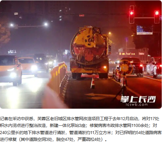 芙蓉區(qū)老舊城區(qū)排水管網(wǎng)改造項(xiàng)目工程由浩天建工集團(tuán)承建,施工內(nèi)容涵蓋地下排水管網(wǎng)清淤排污、管壁修復(fù),以及各內(nèi)澇積水點(diǎn)排水溝渠修復(fù)等,范圍涉及北至瀏陽河、西至黃興中路、南至人民路、東至瀏陽河圍合區(qū)域。