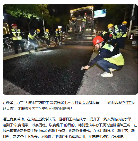 太原市市政建管中心報名參加了這次全國性的競賽活動,積極準(zhǔn)備管道和設(shè)施更新改造工程、管道和設(shè)施運維養(yǎng)護(hù)項目的競賽科目。