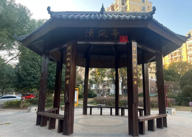 如今,飛檐重新翹起,清風亭華麗地完成了“文化升級”,更添了幾分古樸與雅致。新掛的木匾刻著寫著:“清如秋菊廉何妨瘦,如梅花不知寒”。夜幕降臨時,亭內老人們拿著茶杯坐在一起,講著泗涇古鎮的紅色往事,裊裊茶煙中流轉著這座古鎮的溫暖與底蘊。孩子們也總會再次停下腳步,認真閱讀長廊里的家風廉政故事,清風亭也成為了他們的第二“德育課堂”,在潛移默化中傳遞著正能量,滋養著孩子們的心田。